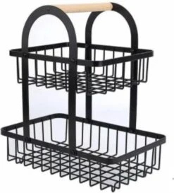 Fruitschaal Etagere 2 Lagen – Fruitmand Voor Keuken Aanrecht – Zwart Metaal – Keuken Organizer – Industrieel – 30x30cm