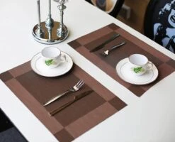 Vitamo™ Duurzame Placemats 4 Stuks – Hittebestendig – Makkelijk Schoon – Fijngeweven PVC – 30 X 45cm – Metallic Bruin