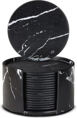 Castagnola Lederen Onderzetters Met Houder – Onderzetters Voor Glazen – Onderzetters Design – Onderzettersset – Drink Onderzetters – Leder – Leren Onderzetters – Set Van 16 – Zwart/Wit