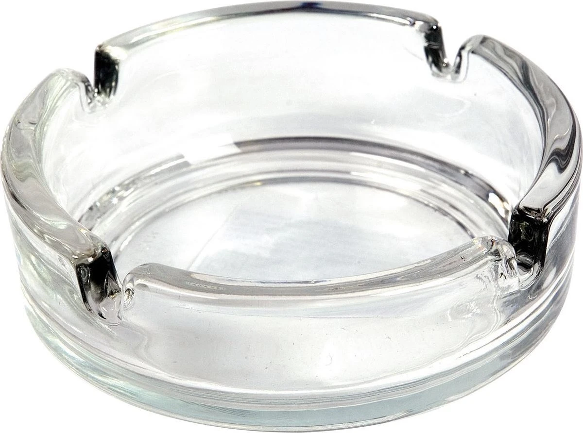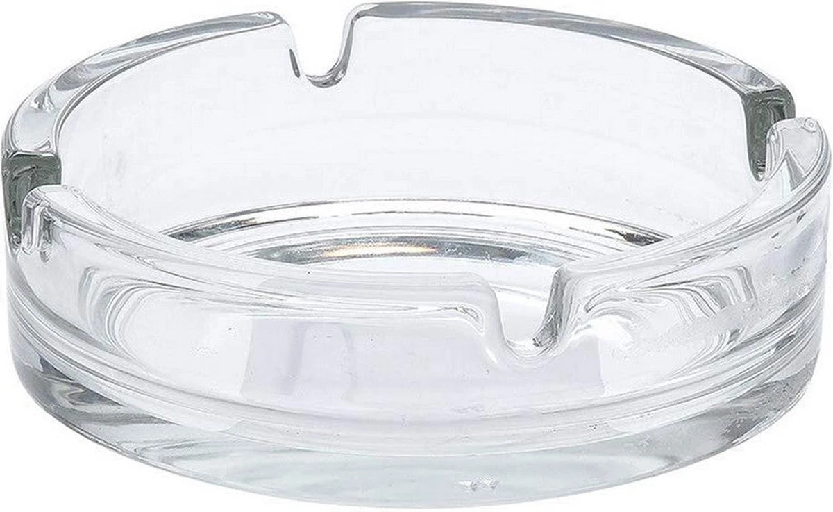Een asbak van helder glas. Voorzien van 4 inkepingen om een sigaret in de plaatsen.