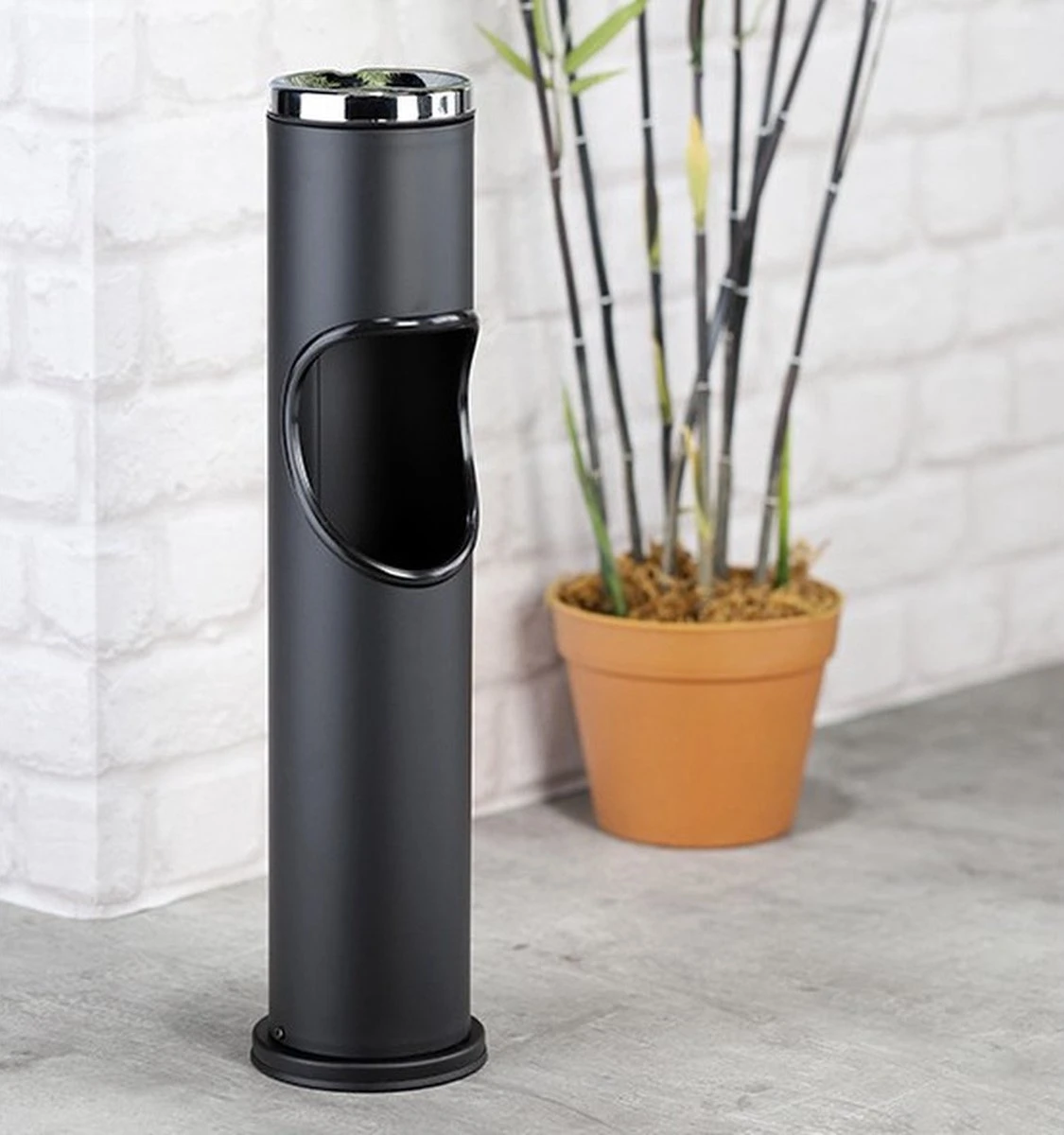 Zwarte staande asbak met uitneembare prullenbak 46,5 cm. Handige 2 in 1 asbak voor afval en sigarettenafval. Formaat: 6,5 x 49,5 cm.