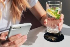 Onderzetters Voor Glazen – Goud Print – Zwart – Rond – Planten – Onderleggers Voor Glazen – 10×10 Cm – 6 Stuks