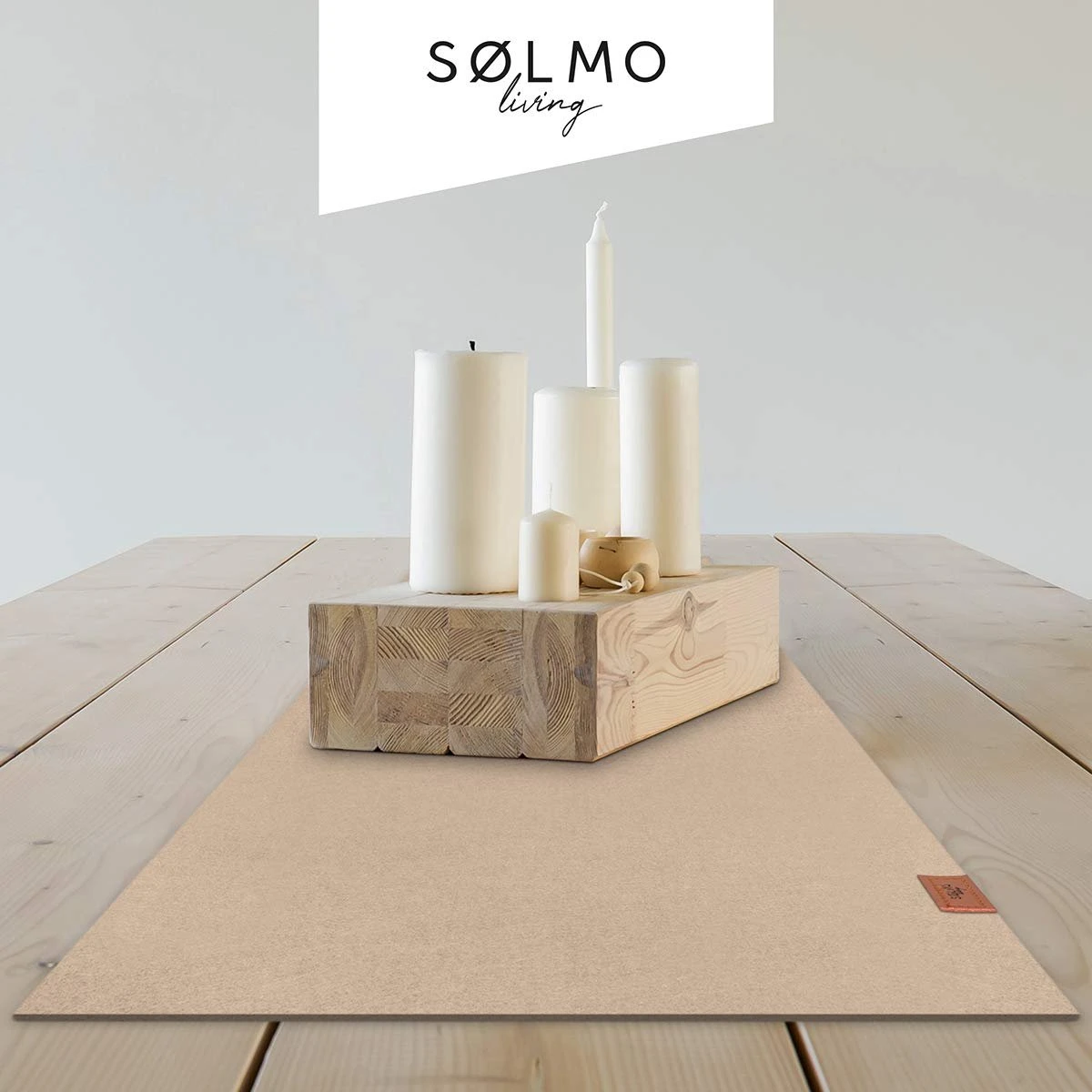 Sølmo I Design Tafelloper Beige Vilt I 150×40 Cm Tafelloper I Scandinavische Vilt Loper Tafel Wasbaar Met Leren Label – Tafelloper Winter