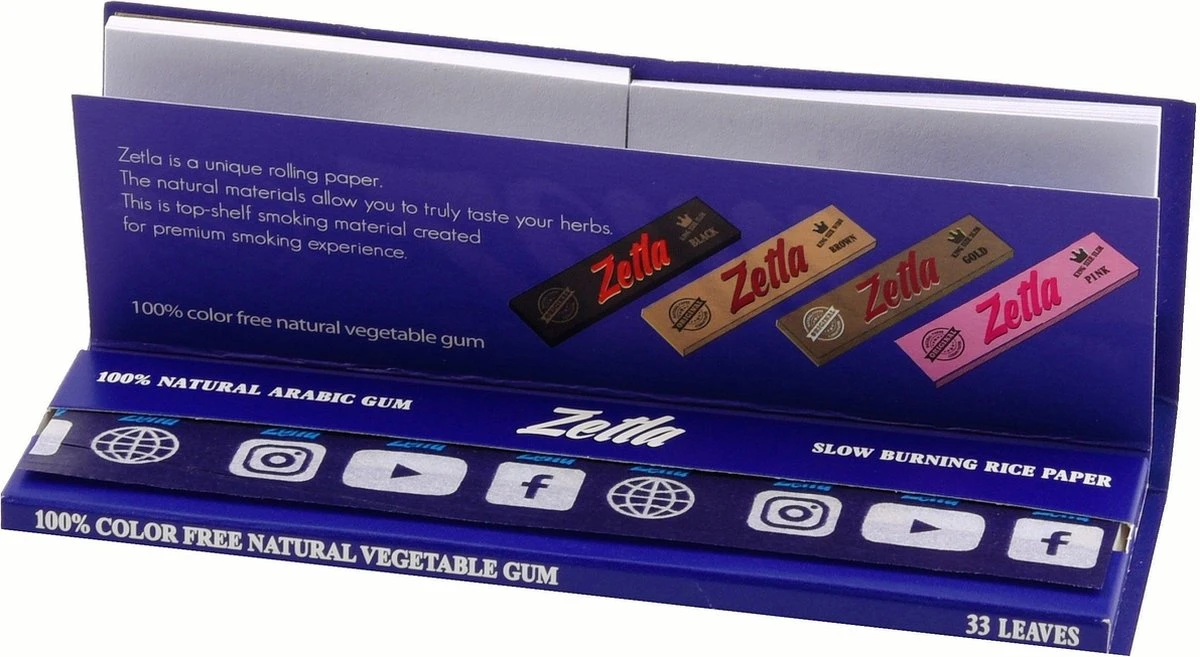 Zetla Rolling Papers made out of premium quality French paper and 100% vegetable gum.